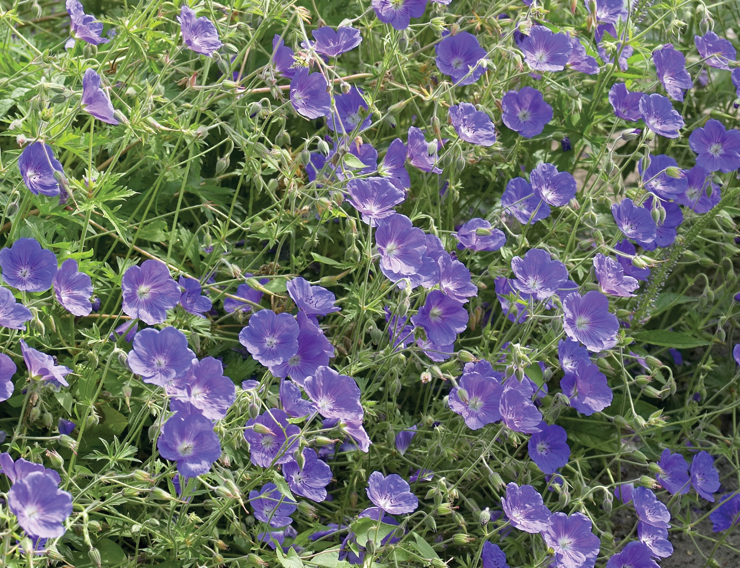 Geranium 'Eureka Blue' is een blauwe ooievaarsbek met wat grotere bloemen dan 'Orion'. Een echte zomerbloeier.