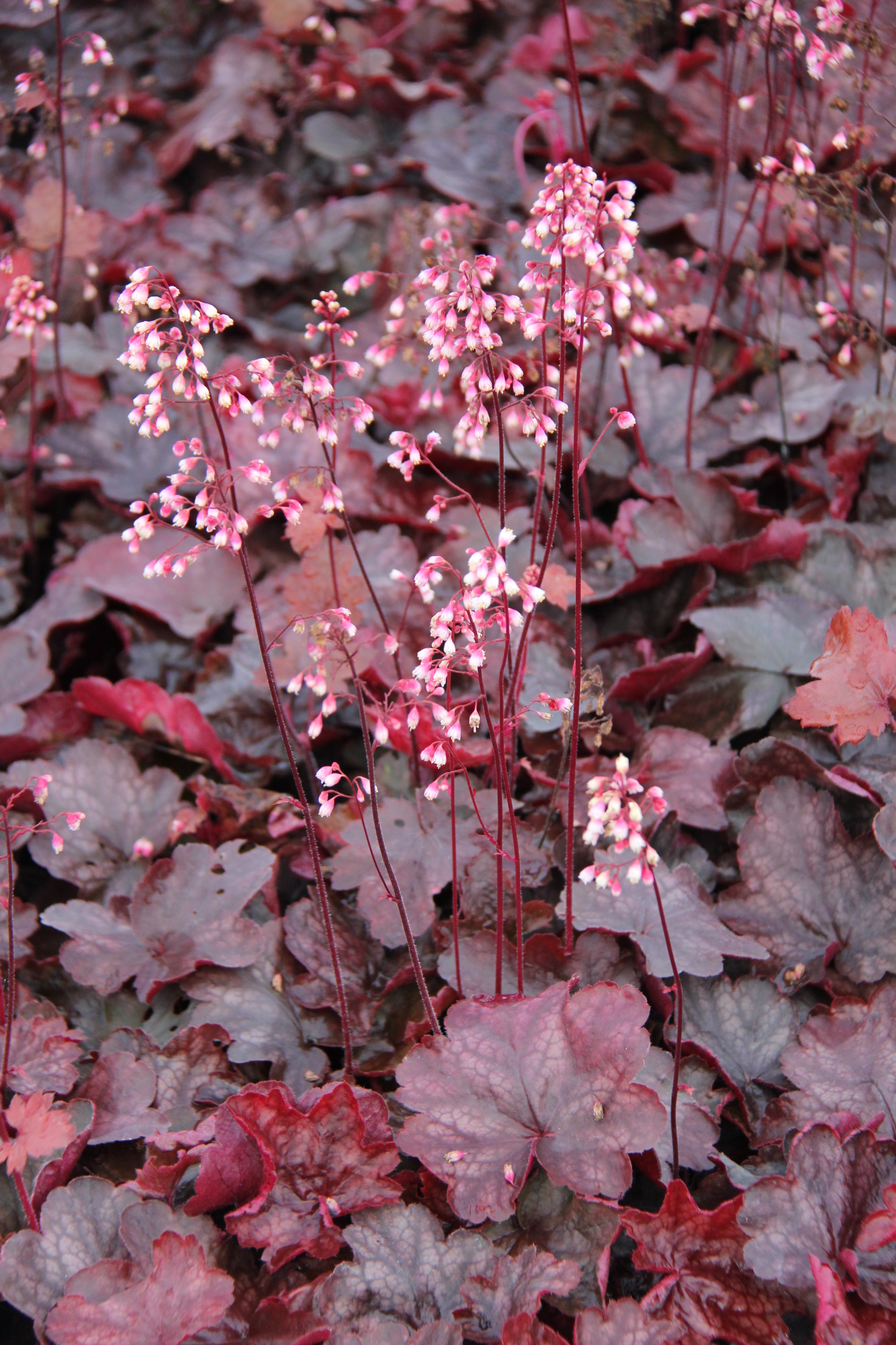 Heuchera's zijn mooie bladhoudende badplanten met ijle bloemtrosen op lange stelen. Ze zijn goed te gebruiken in de woodland border, beschaduwde rotstuin of potten. Vochthoudende grond en minimum wat lichte schaduw is absoluut noodzakelijk om ze door lange, hete zomers te helpen. Afdekken bij bevroren bodem met veel zon of wind.